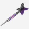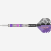 The 90% Tungsten barrel follows a traditional barrel style with a simple yet elegant radial grooved profile throughout. The barrel is then imprinted with Eleanor’s personality with the addition of 3 coloured ring profiles of pink and purple.