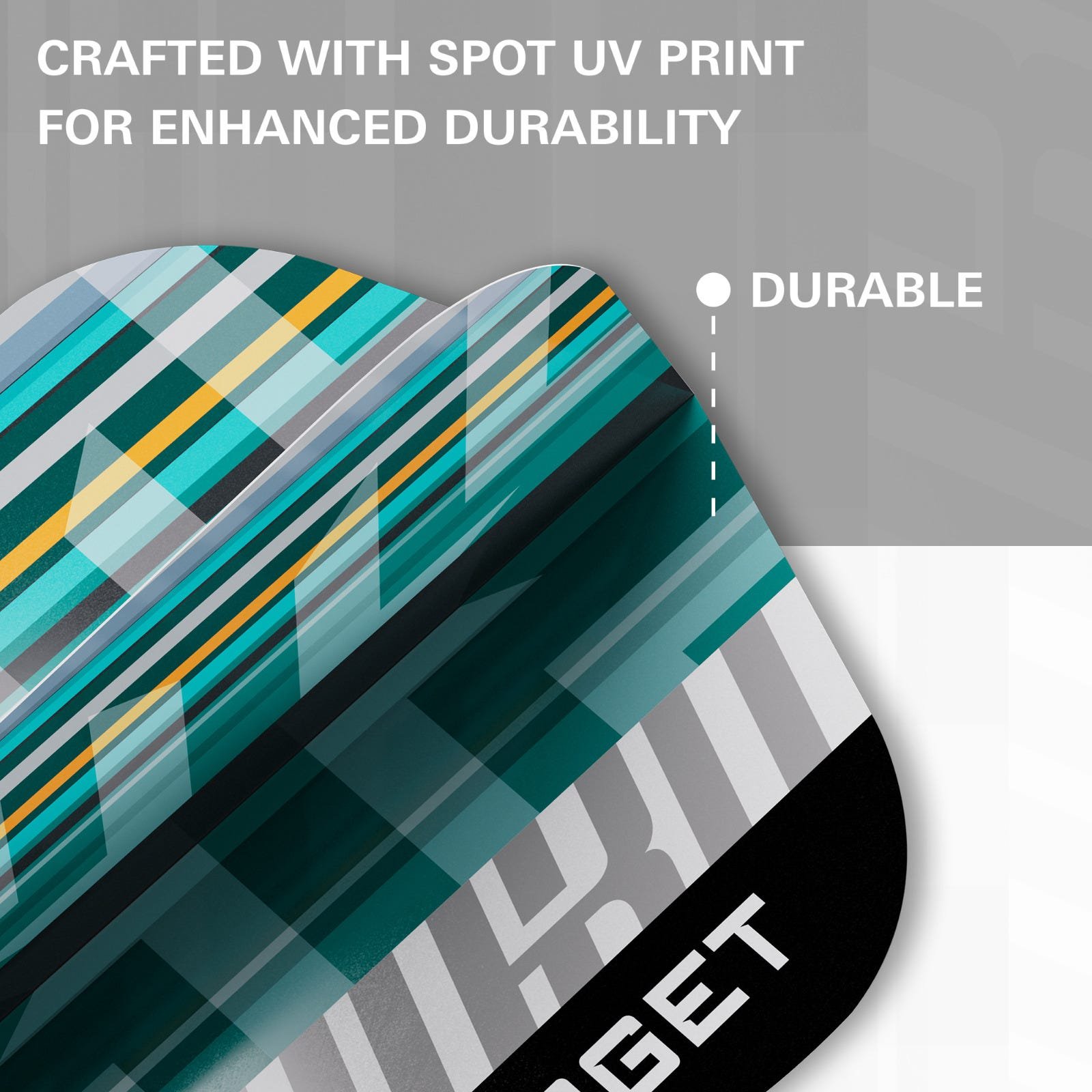 Crafted from 100-micron material, the flights provide lasting resilience and shape retention. A spot UV coating adds a subtle textured finish that enhances shaft grip, reinforces durability, and resists wear over time.