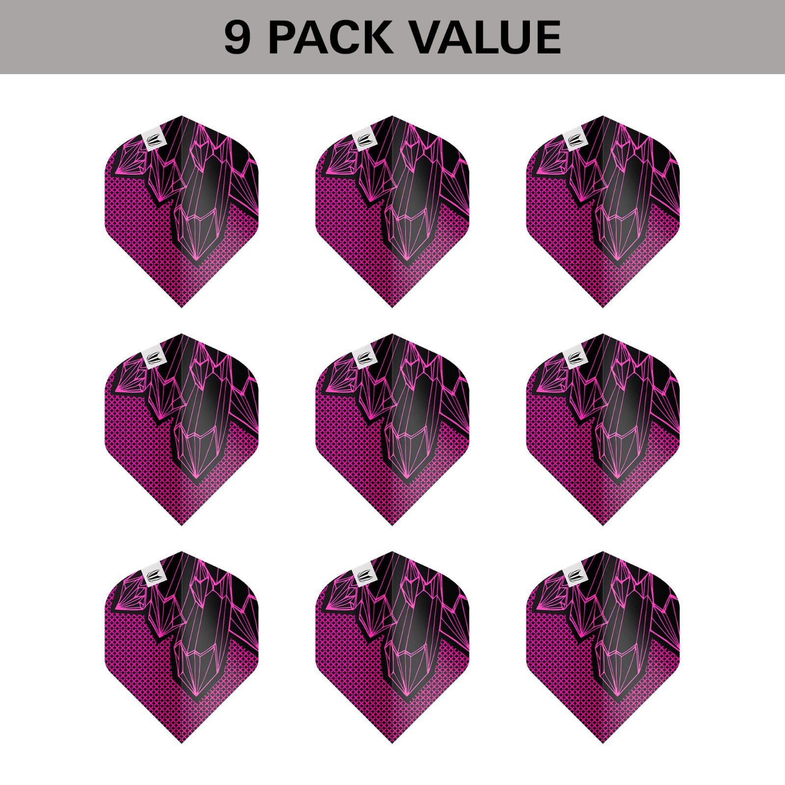 Developed in collaboration with Lorraine Winstanley, the Generation 2 flights showcase her bold, focused playing style. A striking pink and black geometric design captures her sharp precision on the oche, with an angular crystalline pattern inspired by the dart’s grip profile—creating a confident visual identity that stands out on the board.