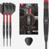 Crafted from 90% tungsten, expertly milled with radial grooves at the front, and nano grooves towards the rear, enhancing the darts finger grip. The barrel is then sandblasted and treated with a sleek black PVD coating for enhanced durability and a refined matte finish, with flecks of red to add a pop of colour to the barrel.