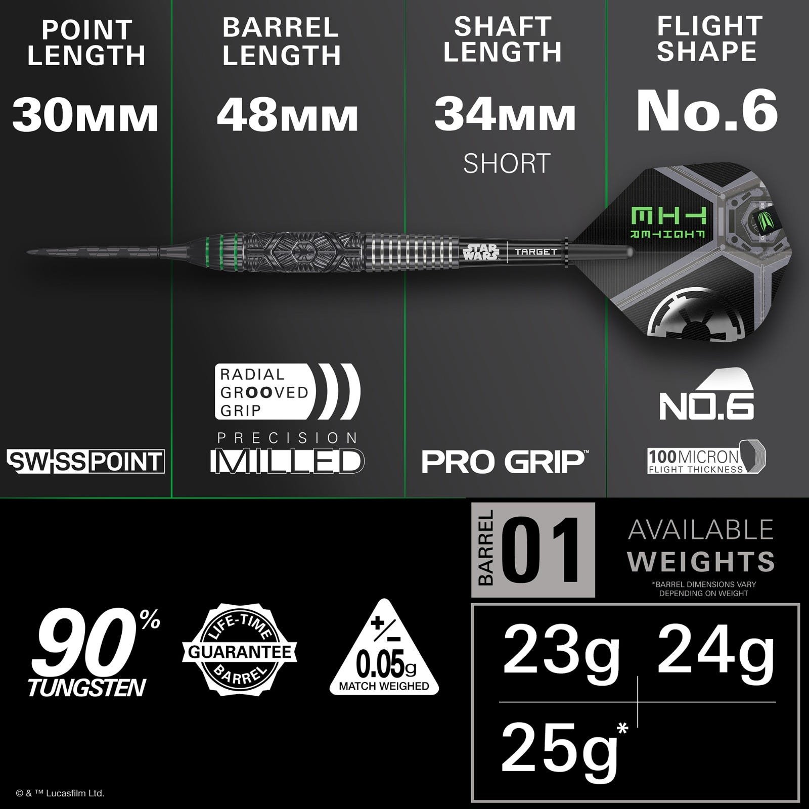 Each dart includes official Star Wars™ Pro Grip shafts, constructed from lightweight, impact-resistant polymer.
