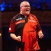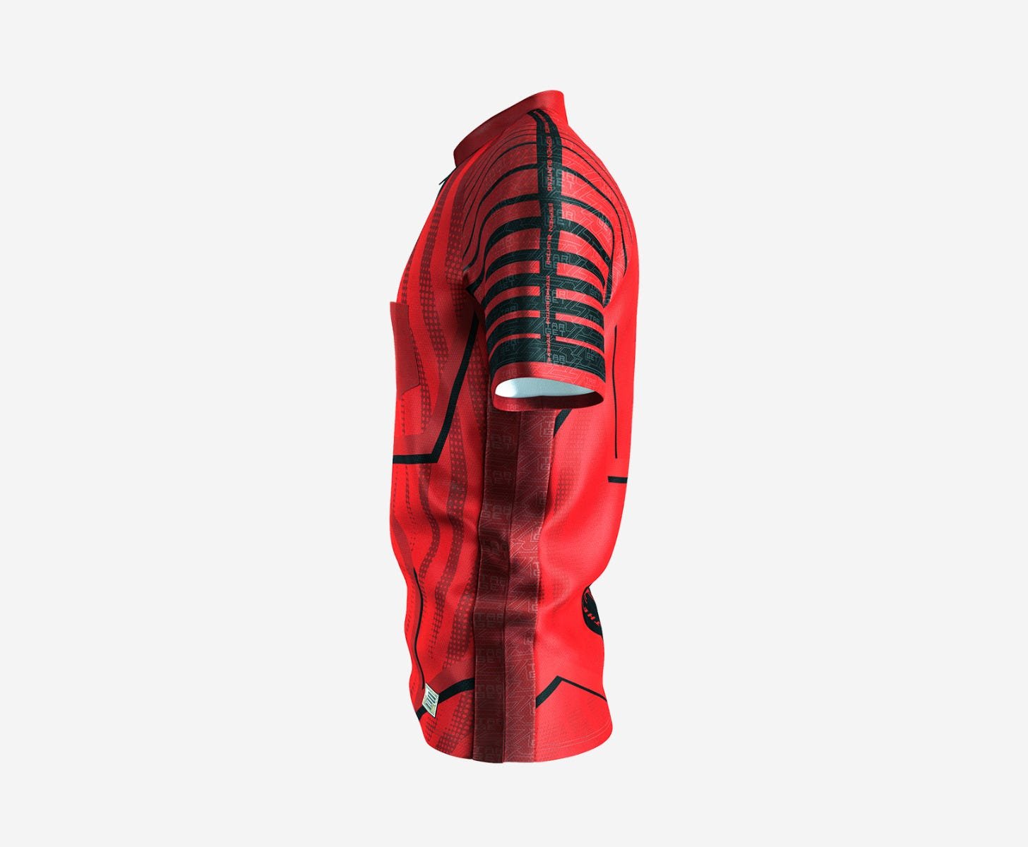 The shirt features a bold two-tone design, with bright red on one side and a prominent star symbolising his 2014 World Championship win. The other side is a sleek black, adorned with bullet graphics that pay homage to his darting nickname. “The Bullet” is proudly displayed in bold red text across the back, making this shirt as dynamic and impactful as Stephen’s presence on the oche.